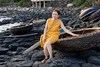 khối đá đen trên ghềnh Đá Đĩa lại ánh lên sắc vàng