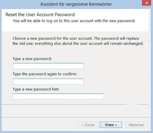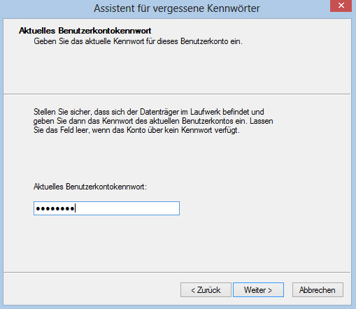 khi sử dụng Password Reset Wizard để