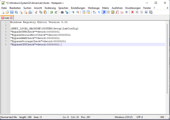 lưu lại dưới cái tên " Bypass.reg " và copy vào