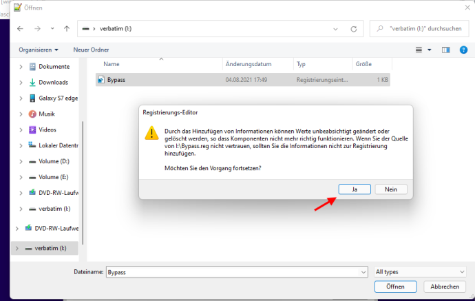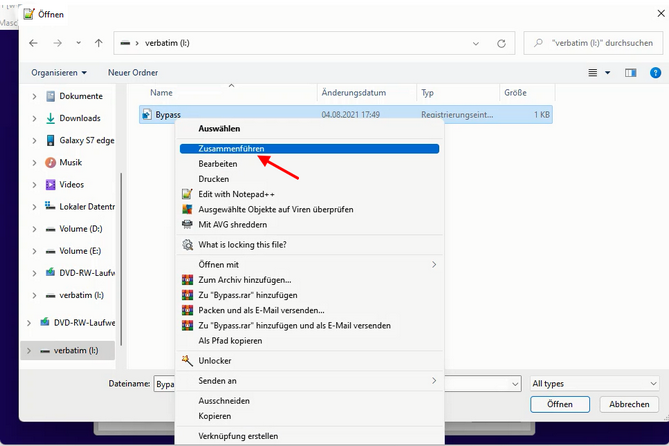 đặt chuột vào file Bypass.reg và bấm bên phải