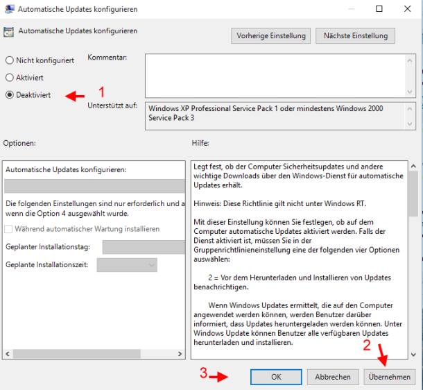 4- Bấm vào "Deaktiviert" - "Übernehmen" - "OK"
