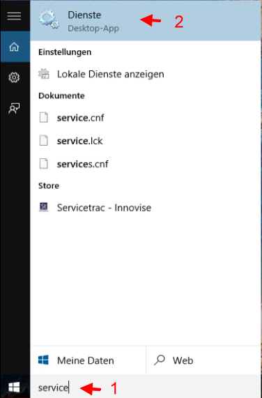 1- ghi vào mục t́m của Windows "Service" kéo lên phía trên cùng, bấm vào "Dienste