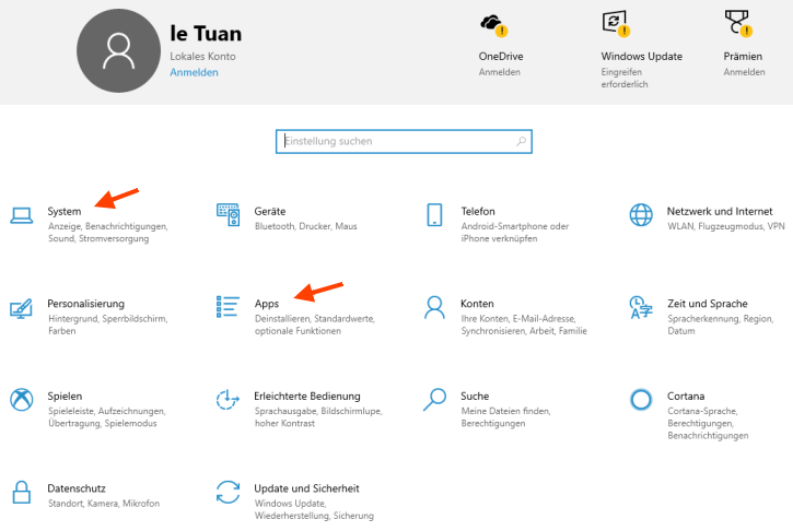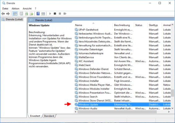* sau khi bấm vào "Windows-Komponenten", th́ bấm vào "Windows Update"