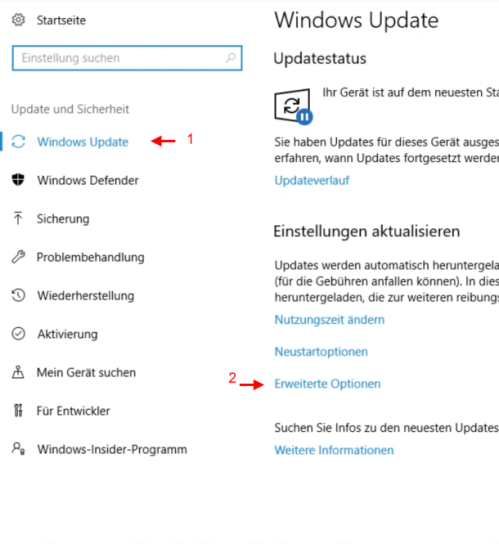2- vào "Windows Update" - bấm vào "Erweiterte Optionen"
