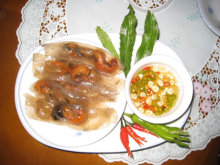 Nguyên liệu 100g thịt ba dọi Cách làm : * Tôm đất làm sạch,chỉ lấy