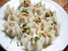 nhất 1 tiếng trong ngăn mát tủ lạnh. * Thường th́ há cảo hay được nặn kiểu h́nh ṣ nhưng cũng có thể nặn theo kiểu h́nh sao 6 cánh. Lấy một viên bột bằng qủa trứng cút cán hoặc dàn bột cho phẳng, sau đó cho nhân vào giữa miếng bột rồi tạo h́nh sao 6 cánh với nhụy là nhân tôm thịt.Làm lần lượt tới khi hết vỏ bánh th́ cho há cảo vào xửng, hấp chín.Há cảo chín bạn dọn ra đĩa, ăn nóng chấm với x́ dầu và ớt rất ngon .