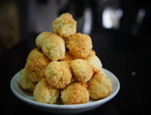 - Lót giấy nến vào khay nướng, xếp từng viên dừa lên khay.