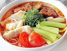 tạo độ chua dịu. Thêm dọc mùng vào, đun sôi rồi tắt bếp.