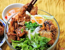 Nguyên liệu – 500 gr thịt vai, chọn miếng có chút mỡ – 1 nhánh sả băm thật nhỏ – 3 tép tỏi băm nhỏ – 2 nhánh hành lá: Phần lá thái nhỏ, phần trắng băm nhỏ – Gia vị: 1/2 muỗng cà phê tiêu; 1 muỗng canh nước mắm; 2 muỗng canh xì dầu; 2 muỗng dầu hào; 1 muỗng canh đường, nếu có đường nâu thì càng tốt; 2 muỗng canh dầu ăn; 1 muỗng canh mật ong. – Bún tươi, xà lách, dưa leo, đồ chua, đậu phụng rang và mỡ hành. – Nước mắm chua ngọt: 1 muỗng canh nước mắm + 1 muỗng canh đường + 1,5 muỗng canh nước lạnh + 1 muỗng canh nước cốt chanh. Tất cả hòa tan mới cho tỏi, ớt băm vào. Cách làm :