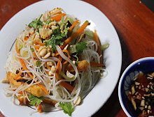- Xào đến khi các loại rau củ chín khoảng 80% thì cho bún vào xào nhanh tay.