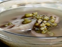 Nguyên liệu - 200g đỗ xanh còn nguyên vỏ - 1 củ sen vừa ăn - 80g đường Cách làm : - Đỗ xanh đãi sạch, nhặt bỏ những