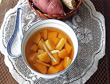 Nguyên liệu - 1 đến 2 củ khoai lang vỏ đỏ ruột vàng - 1 nhánh gừng - Đường nâu hoặc đường cát vàng. Cách làm : - Khoai lang gọt vỏ, ngâm vào thau