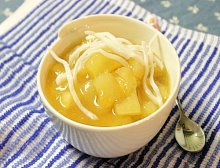 - Cho sắn vào đun cùng, đun lửa nhỏ để vị ngọt của đường