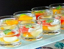 - Rót hỗn hợp thạch vào các cốc hoa quả. Chờ cho thạch