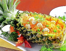 - Tắt bếp, múc cơm vào trái dứa và dùng nóng.