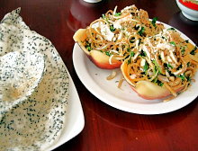 nước cốt chanh pha với một ít tỏi, ớt và bột canh rồi cho rau thơm vào trộn tiếp.