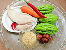 đắng, cà rốt, ớt sừng. Sau khi trộn để khoảng 5-7 phút cho ngấm.