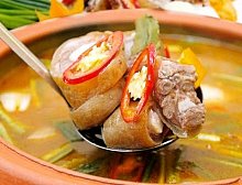 - Nêm thêm gia vị, hạt nêm cho vừa miệng là được. Cho canh đuôi ḅ ra tô rồi ăn