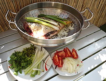 - Trong khi đợi hấp cá th́ chuẩn bị các nguyên liệu ăn kèm như thái dưa chuột, xà lách.