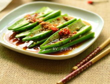 - Sơ chế đậu bắp: ngâm rửa sạch sẽ đậu bắp rồi cắt bỏ đầu. Băm nhuyễn tỏi và ớt