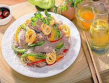 Nguyên liệu miến 100g ớt chuông xanh 50g 1/4 trái ớt chuông đỏ 50g 1/4 trái ớt chuông vàng 50g 1/4 trái trứng 1pcs thịt ḅ 100g hạt nêm Knorr Thịt thăn, Xương ống & Tủy - Bổ sung Vitamin A 10g 2 muỗng nhỏ Dầu mè 3ml 1/2 muỗng nhỏ Dấm 5ml 1 muỗng nhỏ nước tương 8 ml 1.5 muỗng nhỏ tiêu 0.1g Dầu ăn 30ml 2 muỗng canh tỏi băm 5g 1 muỗng nhỏ Cách làm :
