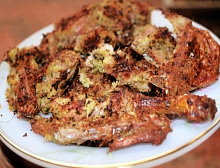- Khi vịt chín, lấy vịt nướng riềng mẻ xếp ra đĩa rồi chấm với x́ dầu ăn nóng sẽ