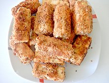 - Sau đó lăn đậu phụ qua hỗn hợp bột chiên xù