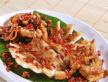 * Bước 4: Nấu sôi dầu trong chảo sâu lòng và thả mực vào chiên mực cho đến khi