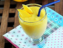Nguyên liệu - 1 quả xoài cỡ 300g - 250 ml Sữa tươi - 2 th́a caffe Ahornsirup hoặc mật ong - 2 th́a caffe nước cốt chanh ( vắt từ quả chanh ) Cách làm :