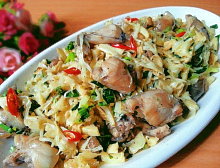 Bước 4: Vẫn chảo đó, cho thêm mỡ rồi trút măng vào xào trên lửa lớn. Khi măng