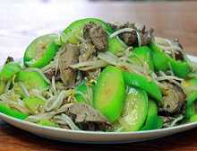 - Đến khi lòng gà tái chín, bạn trút mướp hương vào đảo chừng vài ba lượt rồi