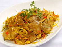 - Cho từ từ lưỡi lợn vào xào cùng, nêm một ít muối, nước mắm, hạt nêm vào cho vừa khẩu vị, xào khoảng 8-10 phút thì tắt bếp, thêm hành lá, rau mùi thái nhỏ vào.
