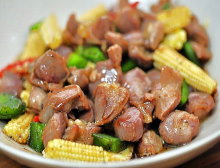 Nguyên liệu - Mề gà - Ớt chuông, ngô non, rượu trắng - Dầu hào, gia vị Cách làm :