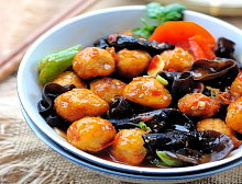 - Rửa sạch mộc nhĩ, ớt rồi cắt nhỏ. Cho gừng tỏi băm, rượu trắng, giấm, xì dầu,
