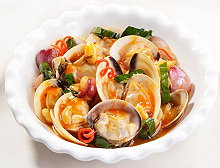 4. Phi thơm hành tỏi cho hỗn hợp xốt đã pha vào đun sôi, cho nghêu vào xốc cho